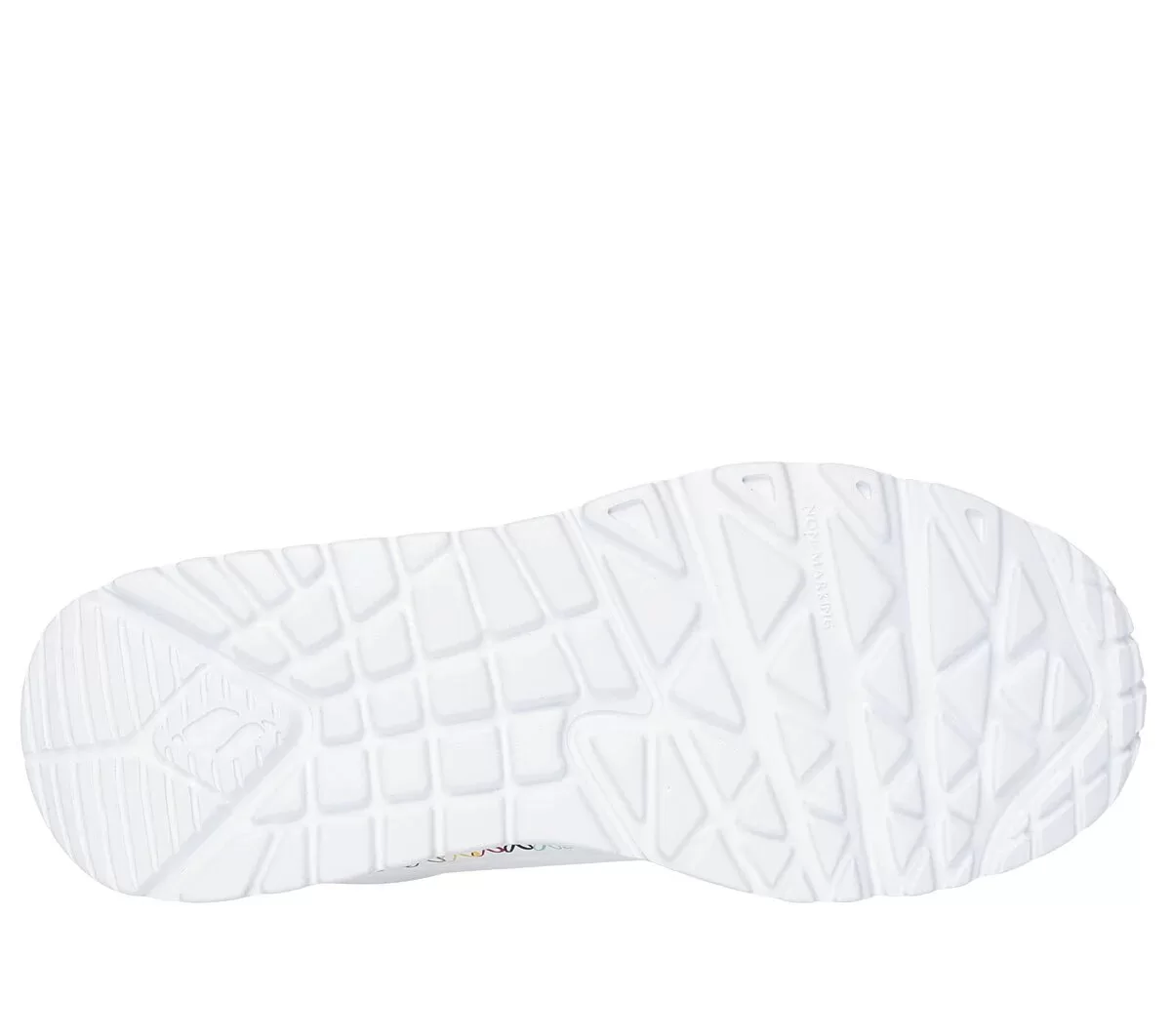 Internationally renowned muralist James Goldcrown brings his iconic #Lovewall heart designs to Skechers in this inspiring collaboration. Show your creative style with Skechers Street™ x JGoldcrown: Uno Lite – Heart Daze. This lace-up fashion sneaker features a print of the artist’s signature heart design, synthetic durabuck and perforated trimmed upper with a Skechers Air-Cooled Memory Foam® insole.