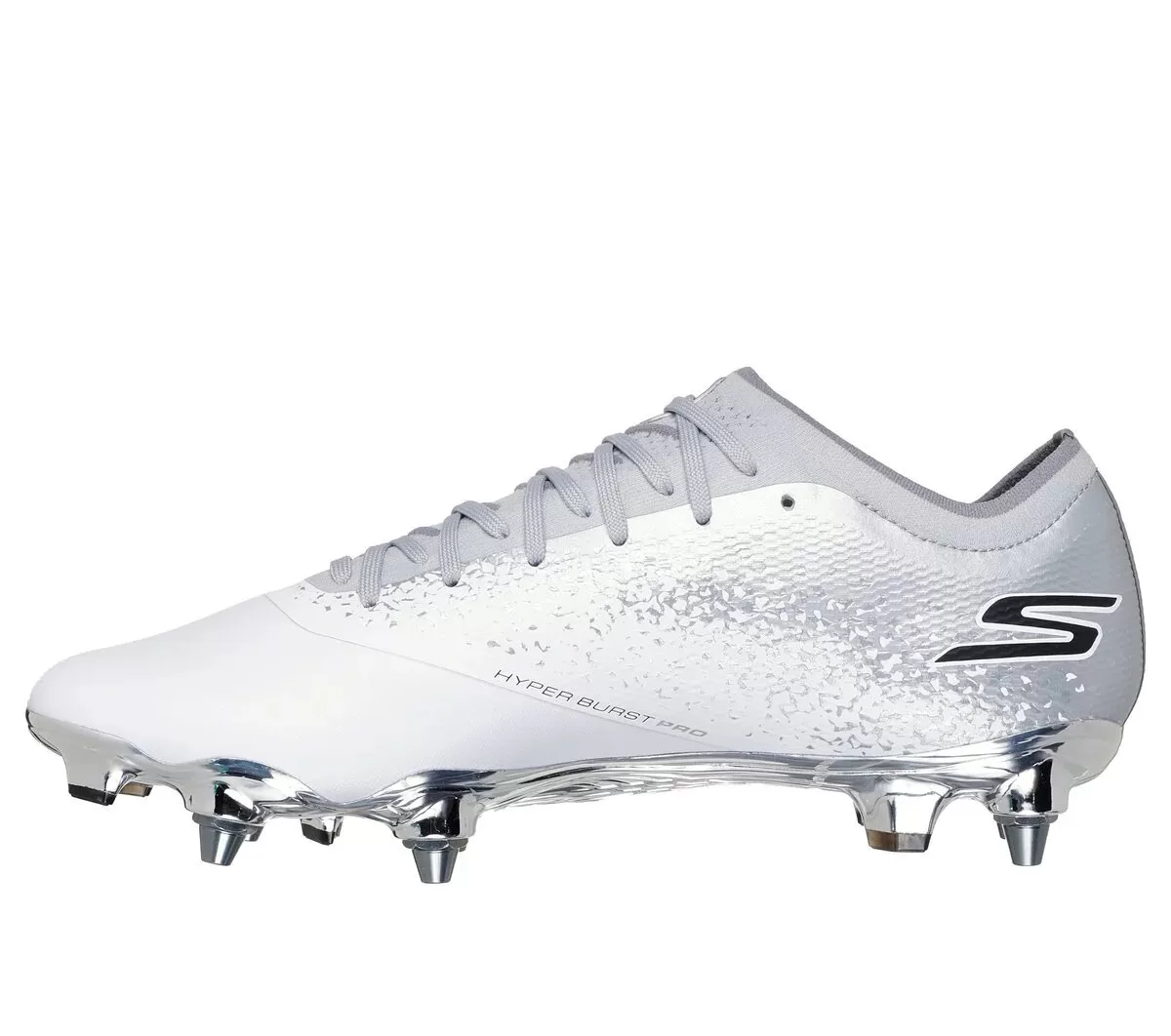 Achieve unmatched comfort and performance on the pitch with Skechers Soccer™: Razor 1.5 Elite SG™. With a mixed stud configuration outsole designed specifically for soft ground surfaces, this lightweight, speed-focused football boot features highly responsive HYPER BURST PRO™ cushioning with a lace-up Performance FitKnit™ engineered upper and a carbon-infused plate for stability and next level energy return.