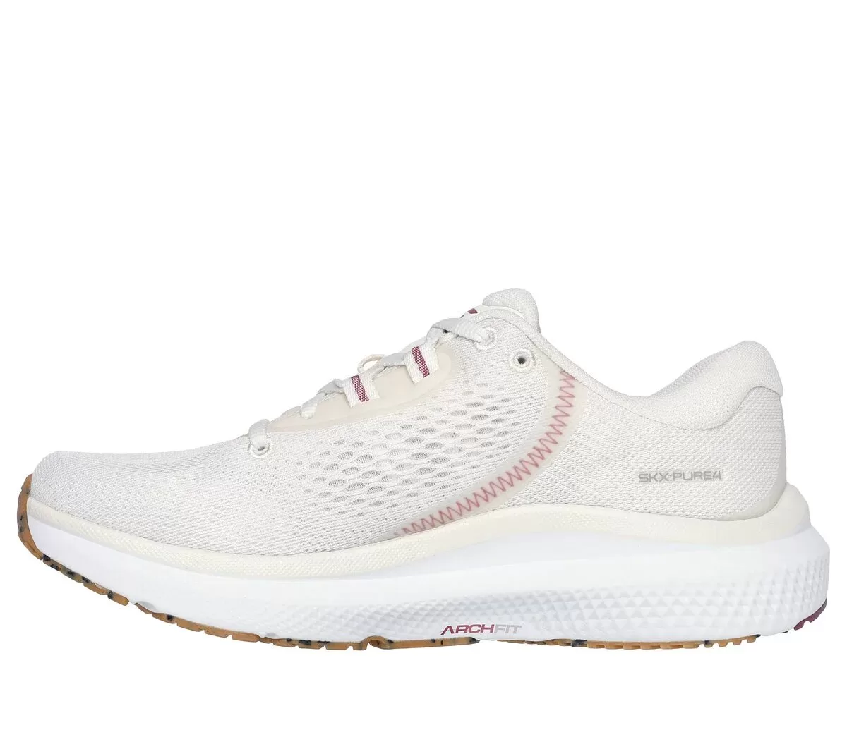 Go the distance in long-lasting support and lightweight comfort wearing Skechers GO RUN Pure 4™ Arch Fit®. This lace-up performance design features an engineered mesh upper with a removable Arch Fit® insole, resilient Skechers ECO FLIGHT™ cushioning made with recycled materials, and a Goodyear® Performance Outsole.