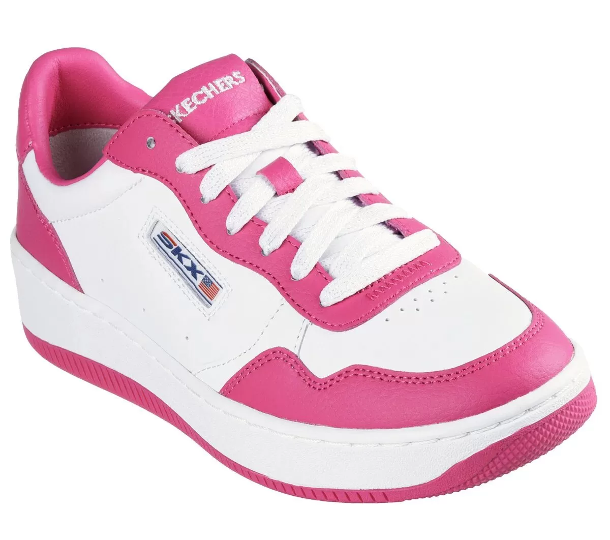 Cool looks and casual comfort combine in Skechers Sport Court 2.0 – City Step. This lace-up court-style sneaker features a color blocked leather upper with a cushioned Skechers Air-Cooled Memory Foam® insole.