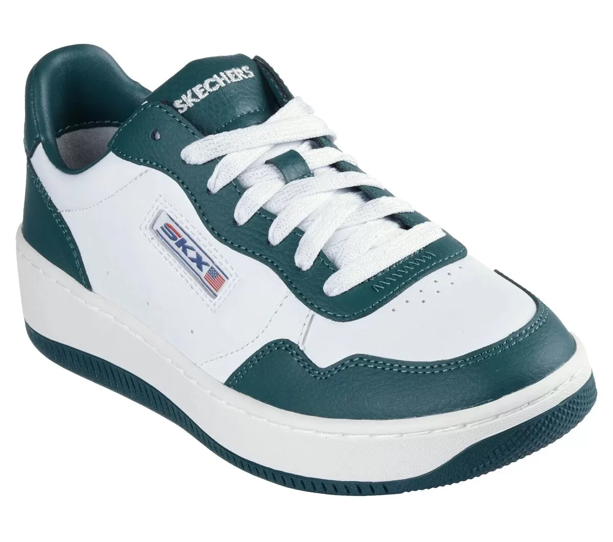 Cool looks and casual comfort combine in Skechers Sport Court 2.0 – City Step. This lace-up court-style sneaker features a color blocked leather upper with a cushioned Skechers Air-Cooled Memory Foam® insole.