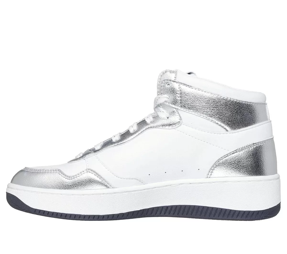 Fun classic style and modern comfort combine in Skechers Sport Court 2.0 – Soft Beam. This Court & Classics high-top lace-up features a synthetic duraleather and metallic overlay upper, complemented by a cushioned Skechers Air-Cooled Memory Foam® insole.