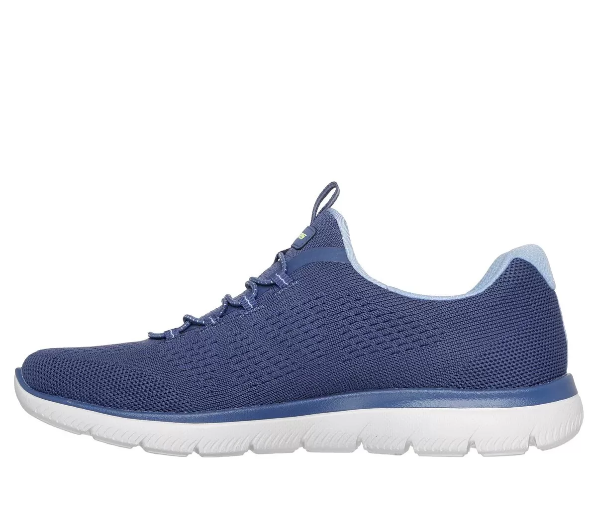 Reach the height of comfort and athletic style with Skechers Summits – Radiant Flow. This easy-on vegan design features an engineered knit upper with a stretch-lace front and a Skechers Memory Foam™ cushioned comfort insole.