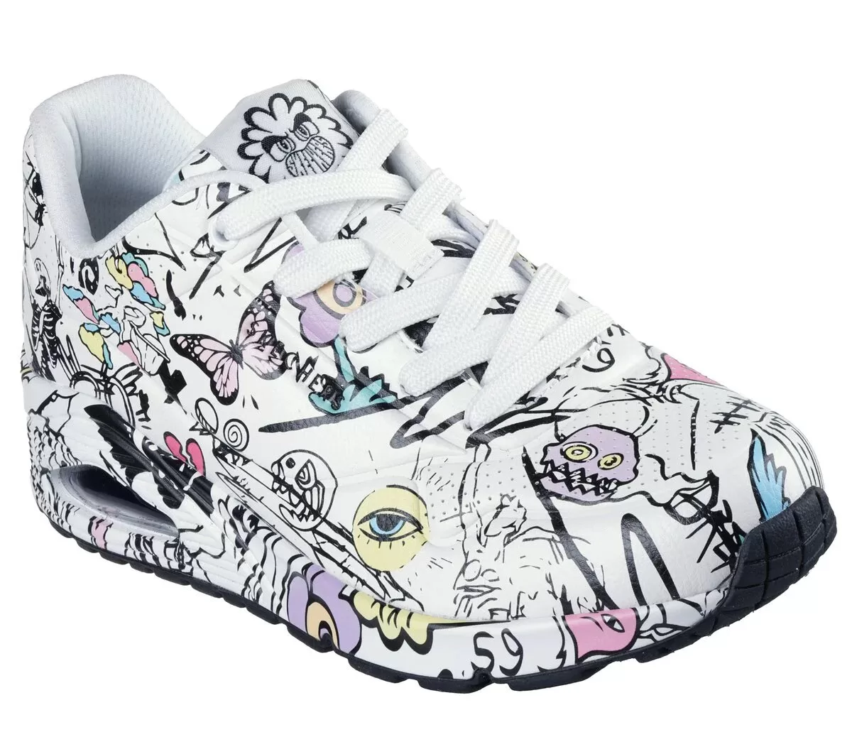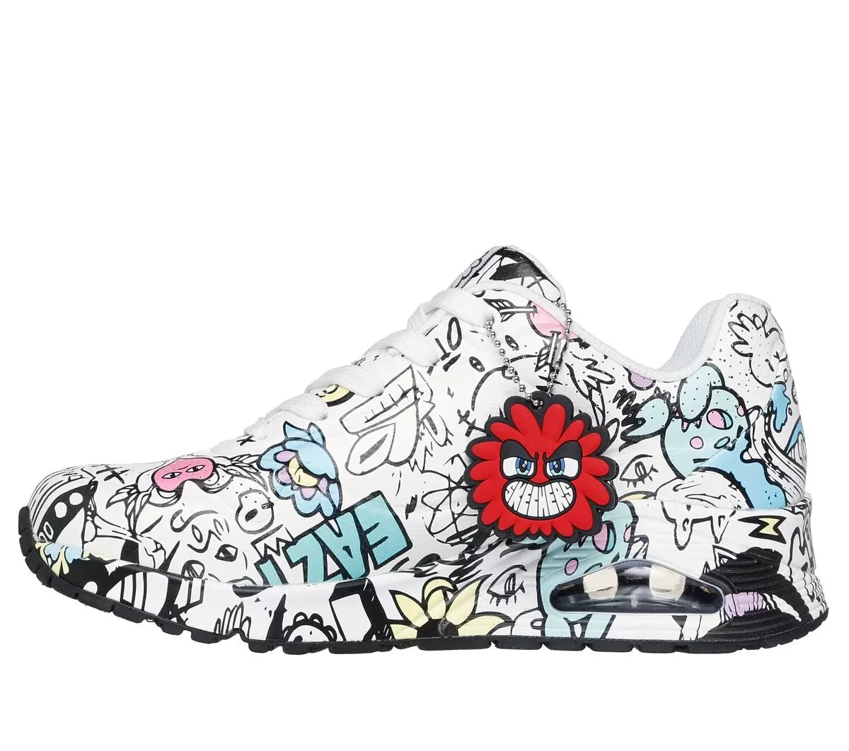 Get drawn into the imaginative world of Skechers Street™ x Vexx with our latest collaboration! Vexx has made Skechers his personal canvas, fusing his signature ‘doodles’ seamlessly with our iconic footwear and apparel to create a collection bursting with vibrant colors and playful imagery. Drawing inspiration from the artist’s rough sketches the Uno – Process Sketch fashion sneaker features a synthetic durabuck upper with Vexx’s signature ‘doodles’, Skechers Air-Cooled Memory Foam® insole and a visible Skech-Air® air-cushioned midsole.