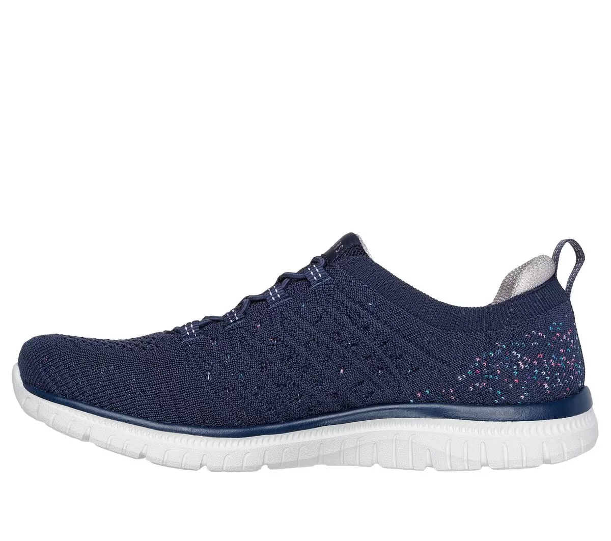 Enjoy your walks in easy-wearing comfort with Skechers Virtue – Show Runner. This sporty design features a Space Dye Knit upper with stretch laces and a cushioned Skecher Memory Foam™ insole.