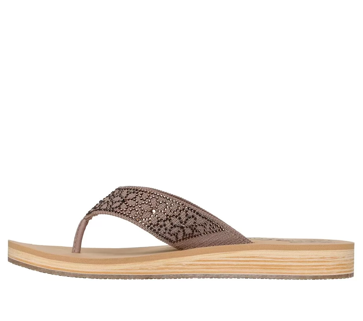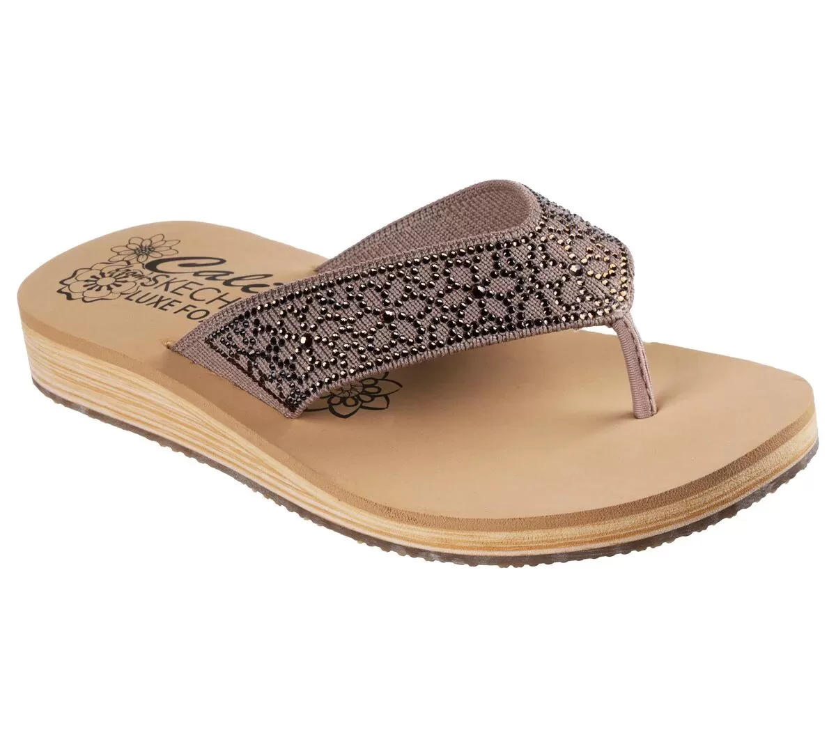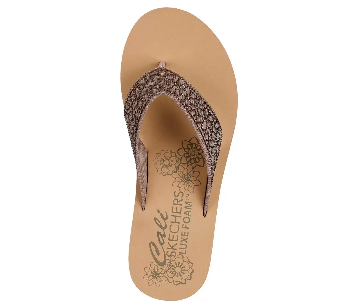 Add a little shimmer to your look with Skechers Cali® Summers Low. This thong sandal features a canvas upper with rhinestone embellishments and a Luxe Foam® cushioned footbed.