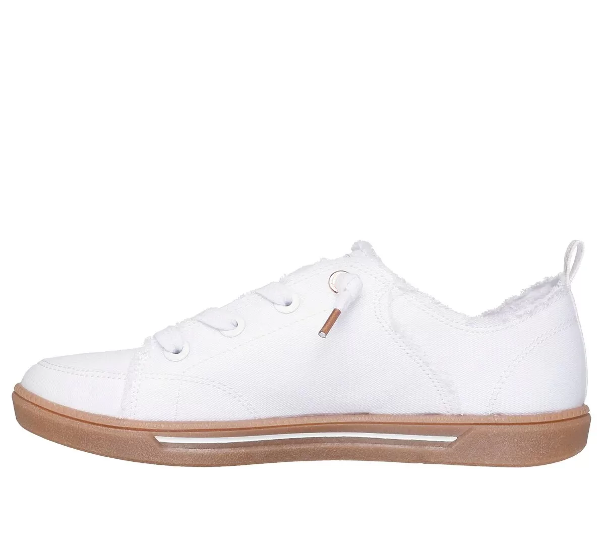 Easy-wearing classic style and comfort combine in BOBS® from Skechers® B Cute 2.0. This casual vegan design features a cotton canvas upper with frayed edge details, tied-off decorative laces, and a cushioned Skechers Memory Foam™ insole. BOBS® from Skechers® is committed to saving the lives of pets in need.