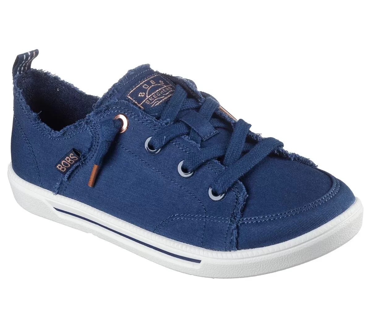 Easy-wearing classic style and comfort combine in BOBS® from Skechers® B Cute 2.0. This casual vegan design features a cotton canvas upper with frayed edge details, tied-off decorative laces, and a cushioned Skechers Memory Foam™ insole. BOBS® from Skechers® is committed to saving the lives of pets in need.