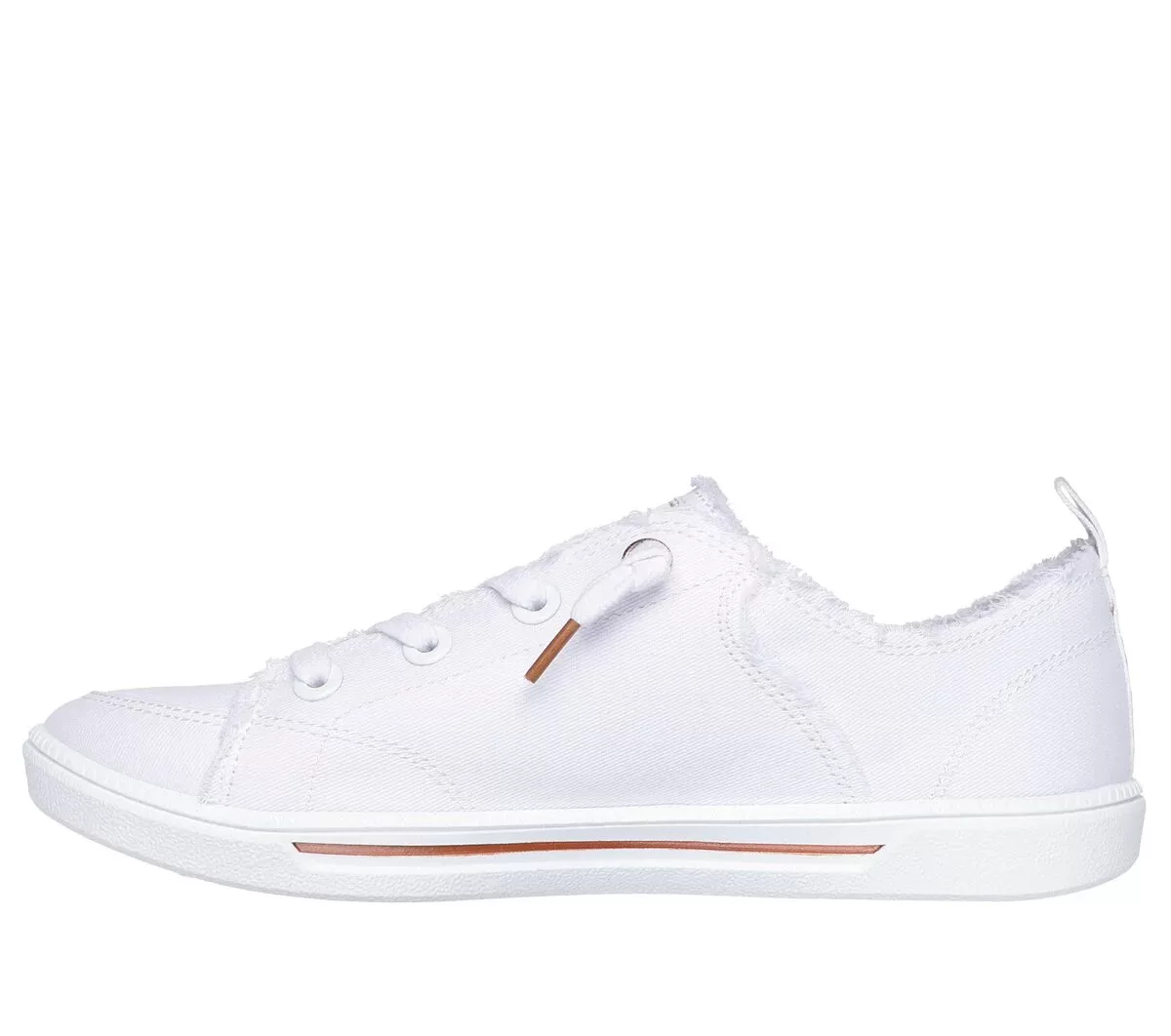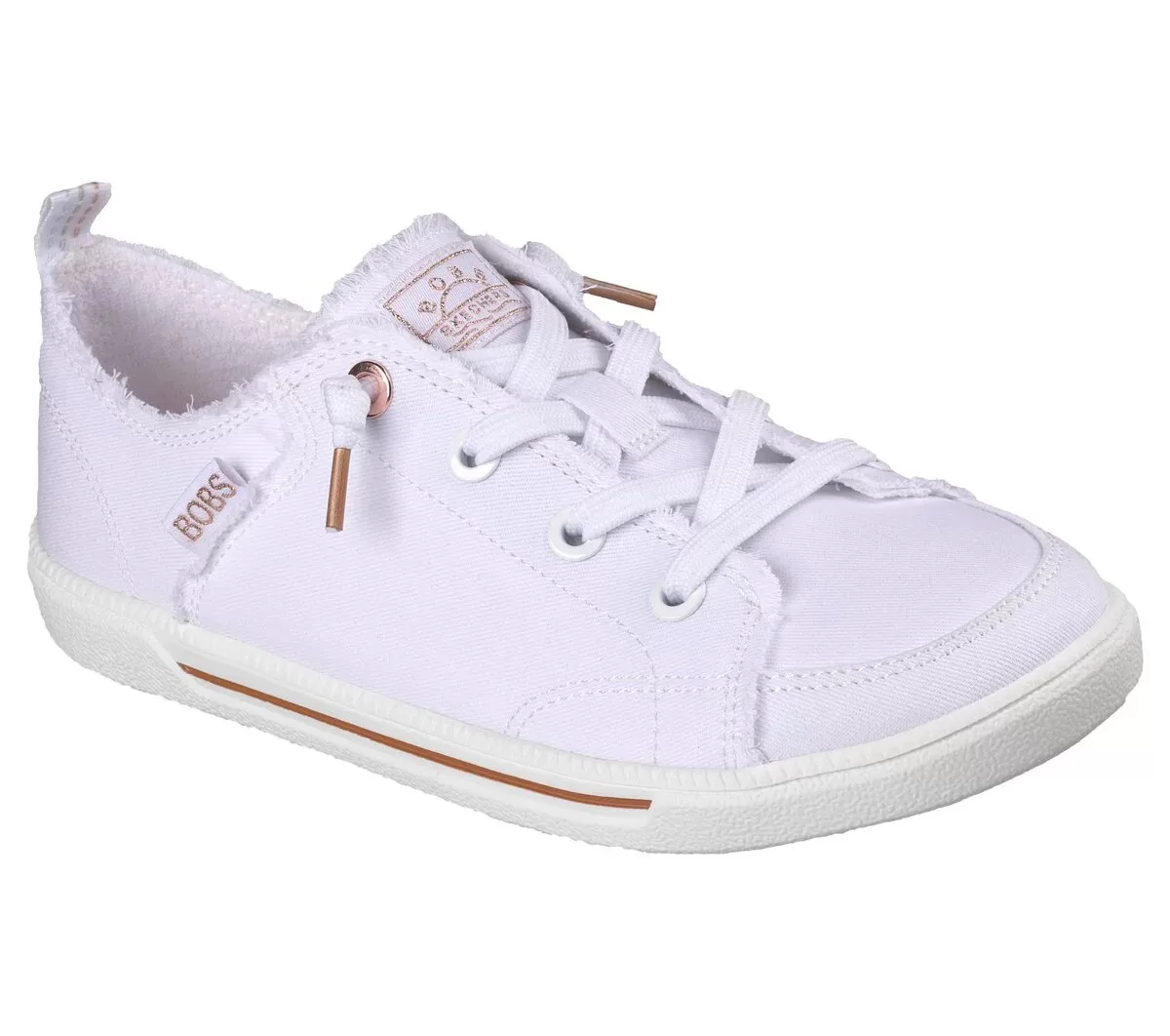 Easy-wearing classic style and comfort combine in BOBS® from Skechers® B Cute 2.0. This casual vegan design features a cotton canvas upper with frayed edge details, tied-off decorative laces, and a cushioned Skechers Memory Foam™ insole. BOBS® from Skechers® is committed to saving the lives of pets in need.