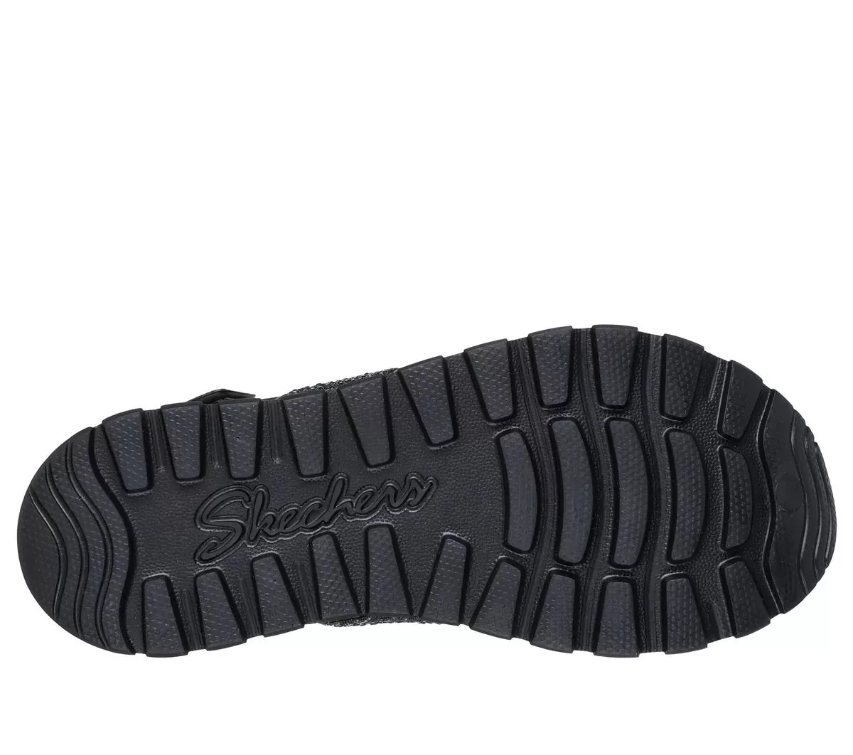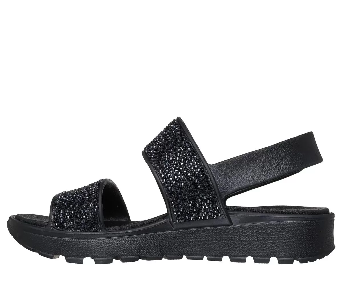 Show off your comfort in glitzy fashion wearing Skechers Foamies®: Arch Fit® Footsteps – Elegance. This strappy platform sandal has been granted the APMA Seal of Acceptance and features a rhinestone-covered Foamies® EVA upper with adjustable heel closure, Luxe Foam® cushioning, and a supportive Arch Fit® footbed.