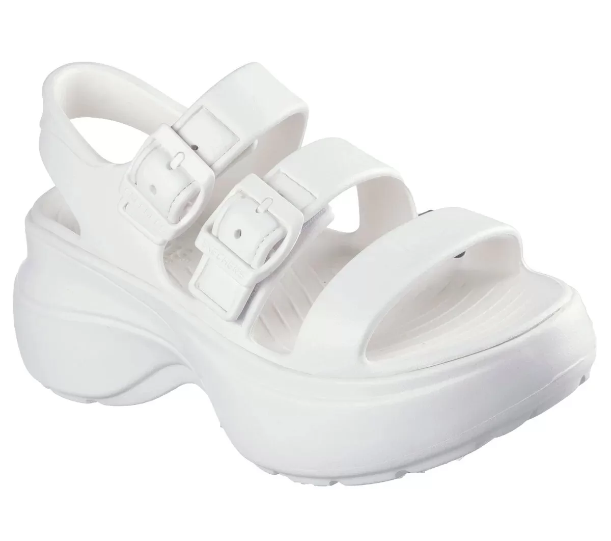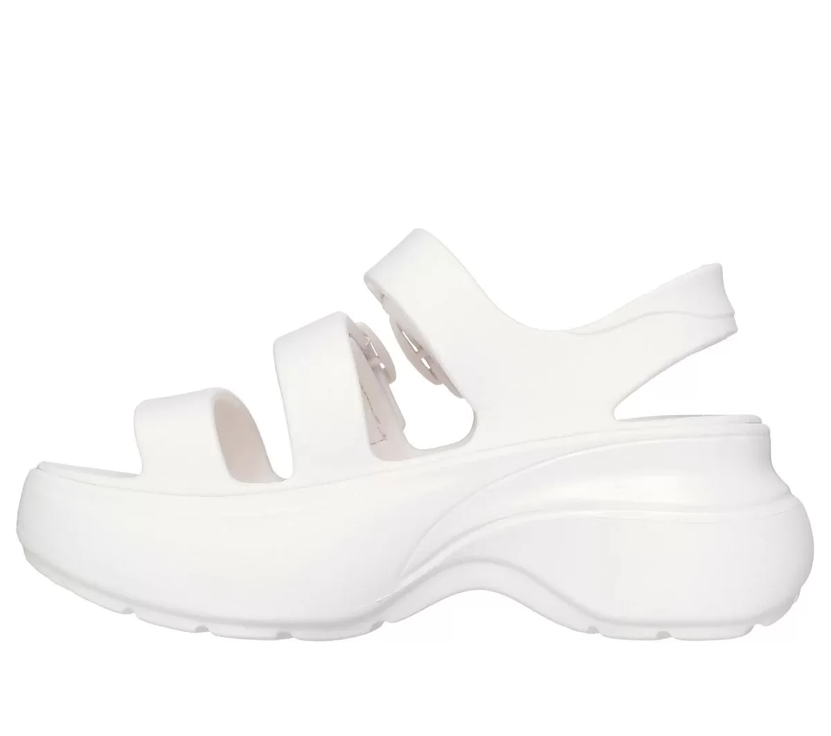 Make a statement with a fashion-forward look wearing Skechers Foamies®: Foamies Tai – Get Real. This sculpted open-toe fashion sandal features a flexible Foamies® EVA upper with buckle straps, adjustable instep closure, cushioned footbed, and a semi-articulated chunky midsole.