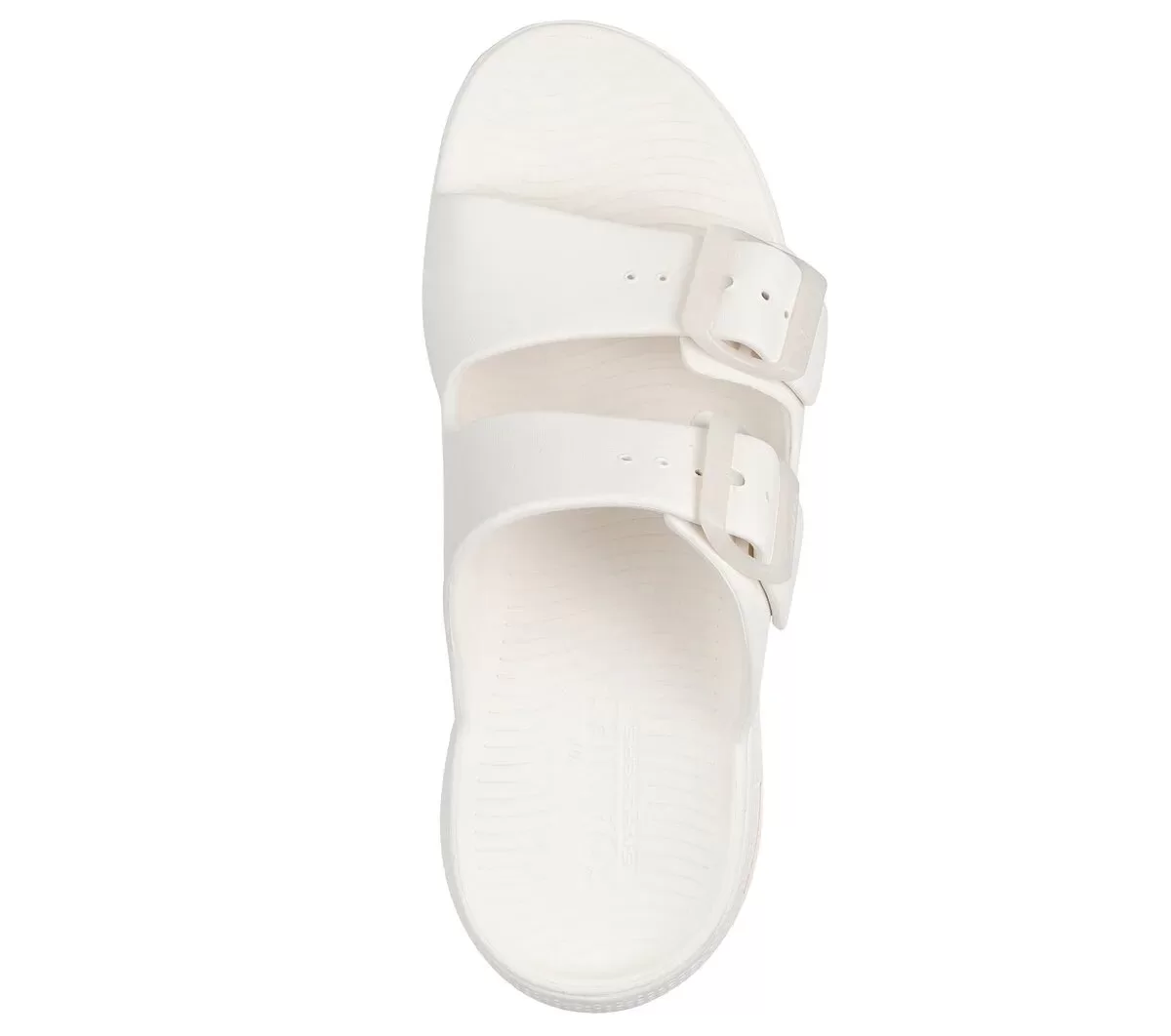 Take casual warm weather design and pair it with supreme massaging comfort wearing Skechers Foamies: Massage Fit® – Care Free. This innovative open-toe Foamies® sandal features an EVA upper with an adjustable buckle strap and a unique wavy Massage Fit® midsole that gently massages your feet with every step.