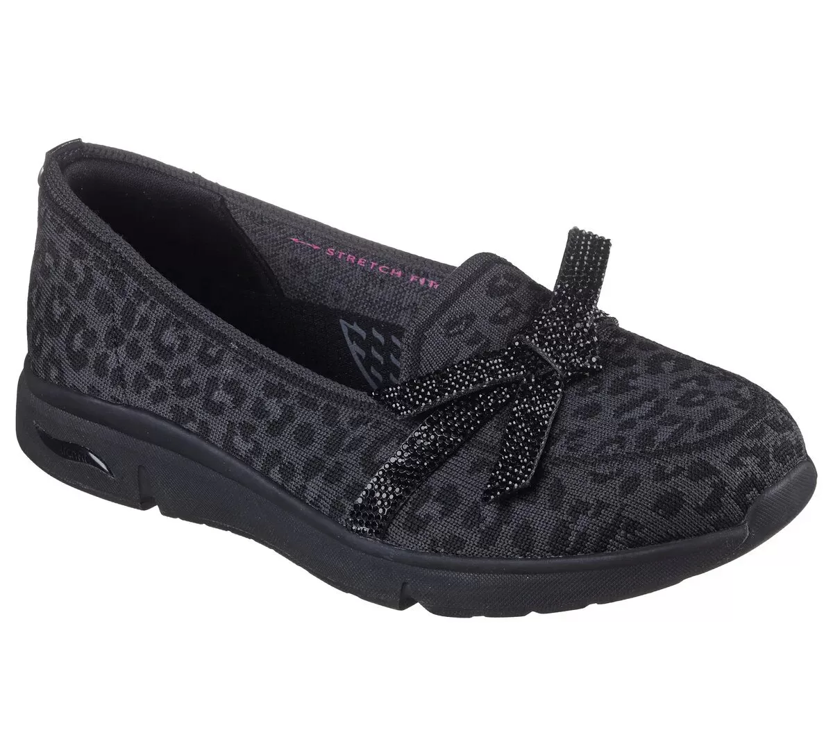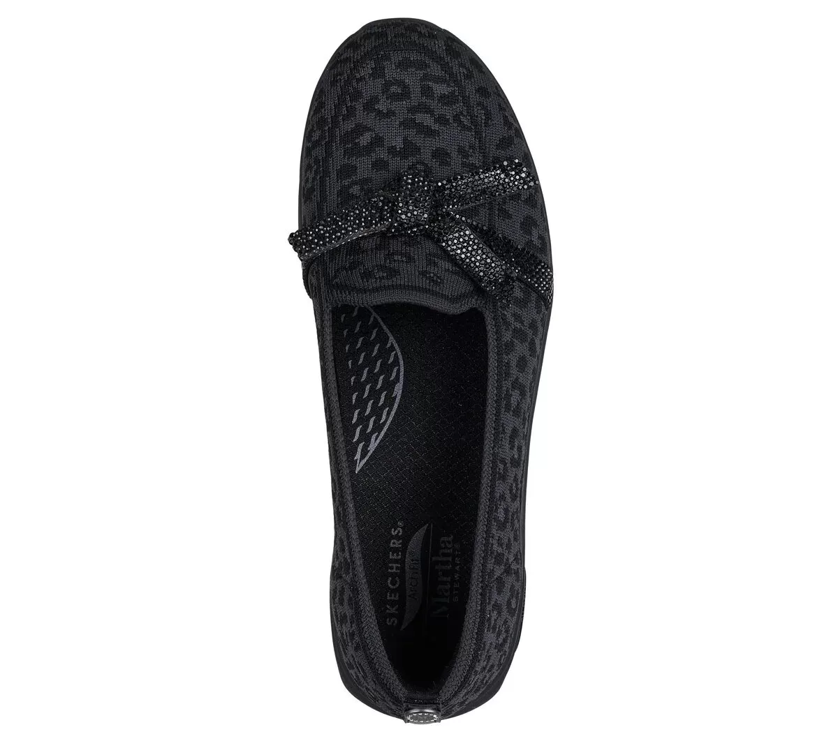 Celebrated lifestyle expert, Martha Stewart, delivers her one-of-a-kind touch to Skechers in this spirited collaboration. Glam up your look with long-lasting comfort wearing Martha Stewart x Skechers: Arch Fit® Living. This vegan loafer features a Stretch Fit® leopard print upper with a rhinestone embellished bow and a removable Arch Fit® insole.