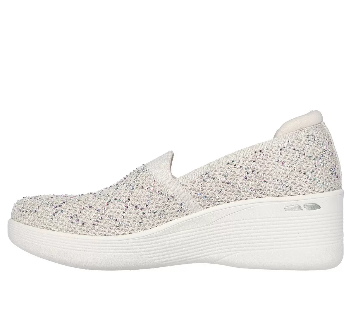 Celebrated lifestyle expert, Martha Stewart, delivers her one-of-a-kind touch to Skechers in this spirited collaboration. Shine on in fashionable flair wearing Martha Stewart x Skechers: Pier-Lite – My Reflection. This casual fashion wedge features a Stretch Fit® mesh knit upper with rhinestone embellishments, a wedge midsole and a Skechers Air-Cooled Memory Foam® insole.