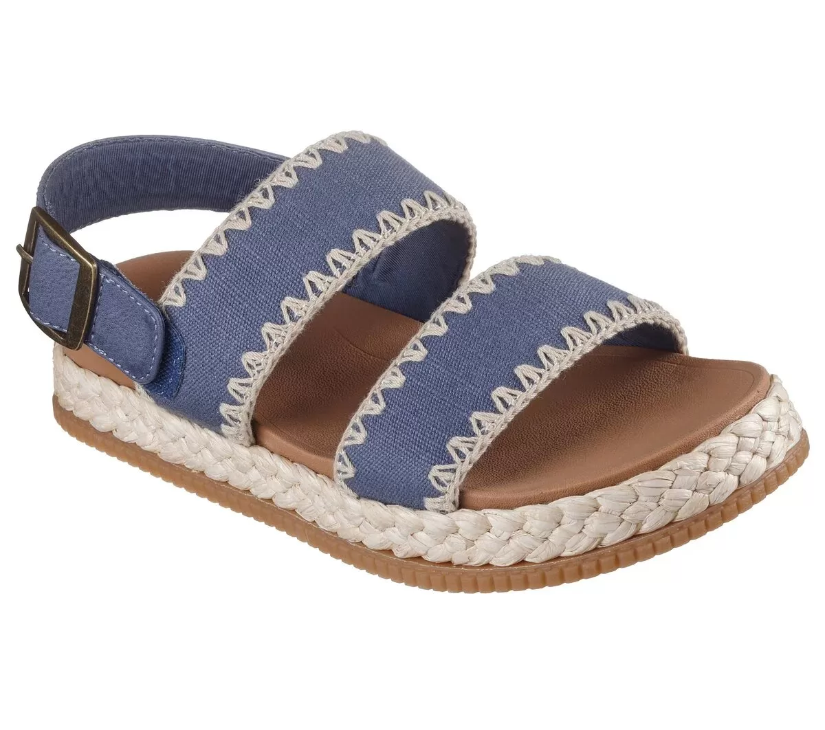 Embrace the romance of the outdoors wearing BOBS® from Skechers® Stormy Kiss – Secure Storm. This dual crossband sandal features a faux leather and linen upper with stitching accents, backstrap with buckle detail, raffia midsole trim, and a Skechers Plush Foam® footbed. BOBS® from Skechers® is committed to saving the lives of pets in need.