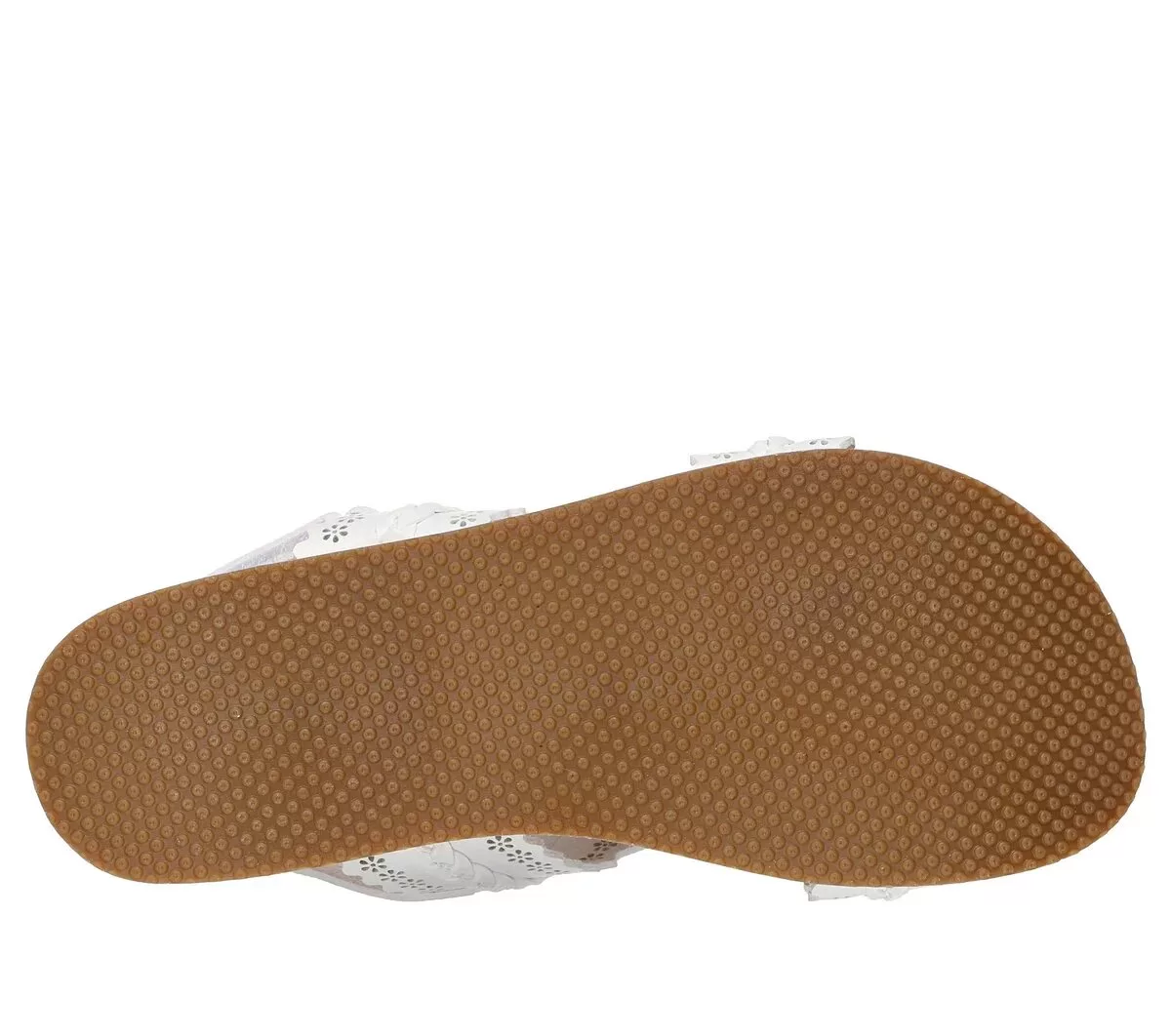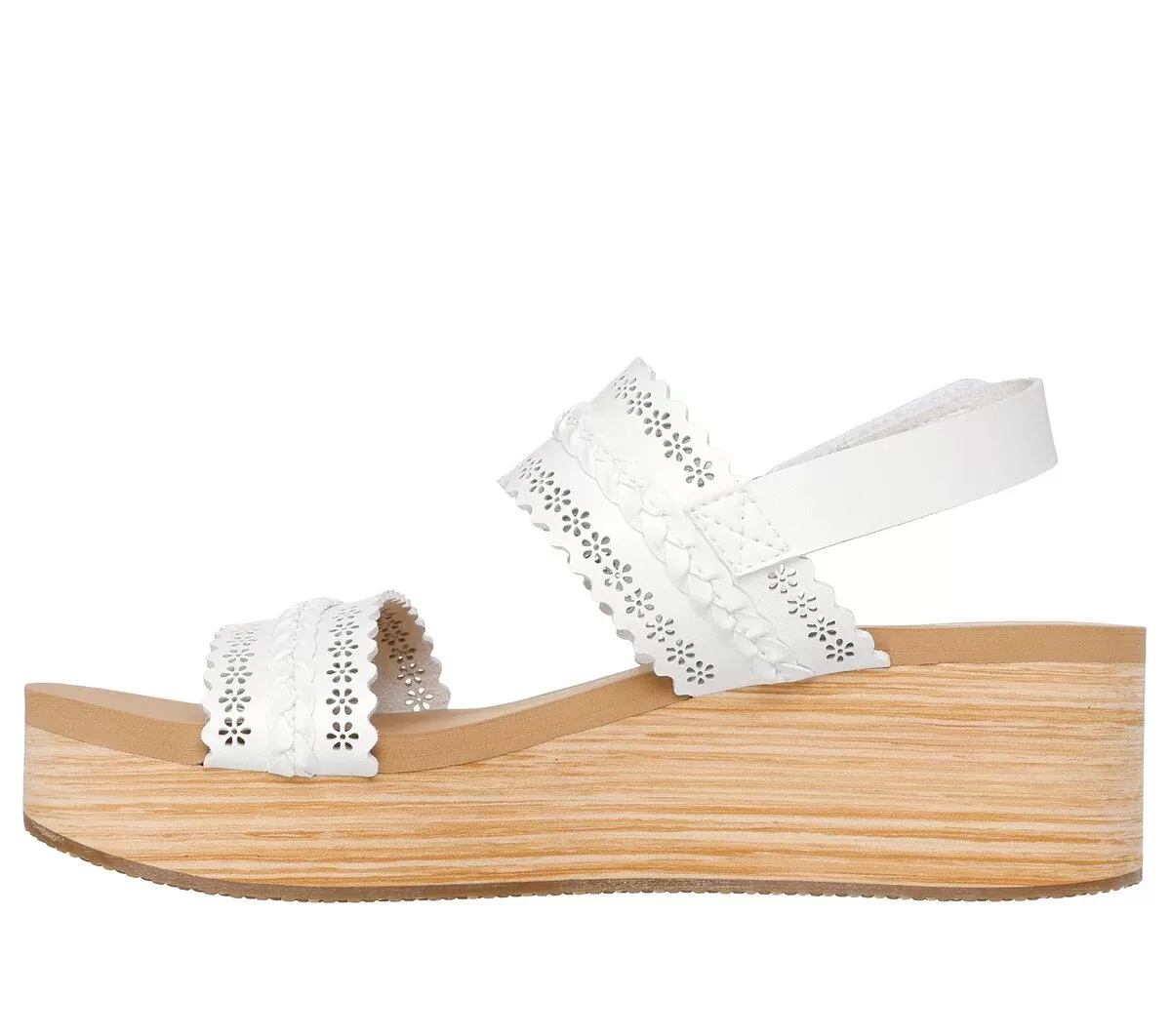 Dazzle your steps in floral style and comfort with Skechers Cali® Summers – Coastal Stroll. This vegan wedge sandal features a floral cutout synthetic upper with an adjustable back strap and a cushioned Luxe Foam® comfort footbed.