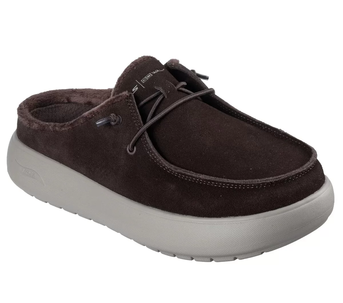 Step into boundless easy-going comfort with Skechers Relaxed Fit®: GO WALK® Horizon – Hollie. This roomy open-back moc-toe style features a genuine suede upper with tied-off deco laces, a supportive Arch Fit® footbed, and lightweight ULTRA GO® cushioning.