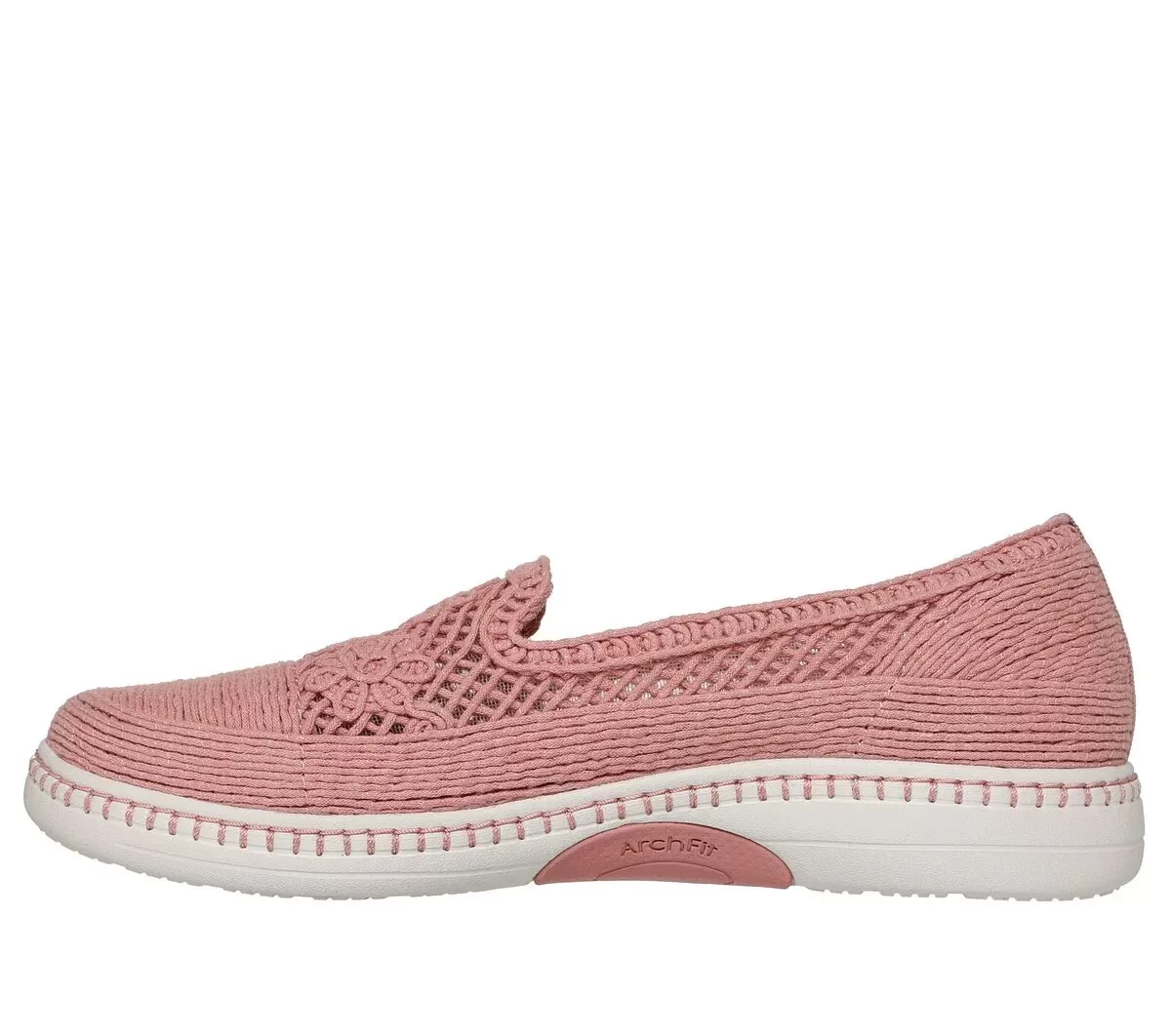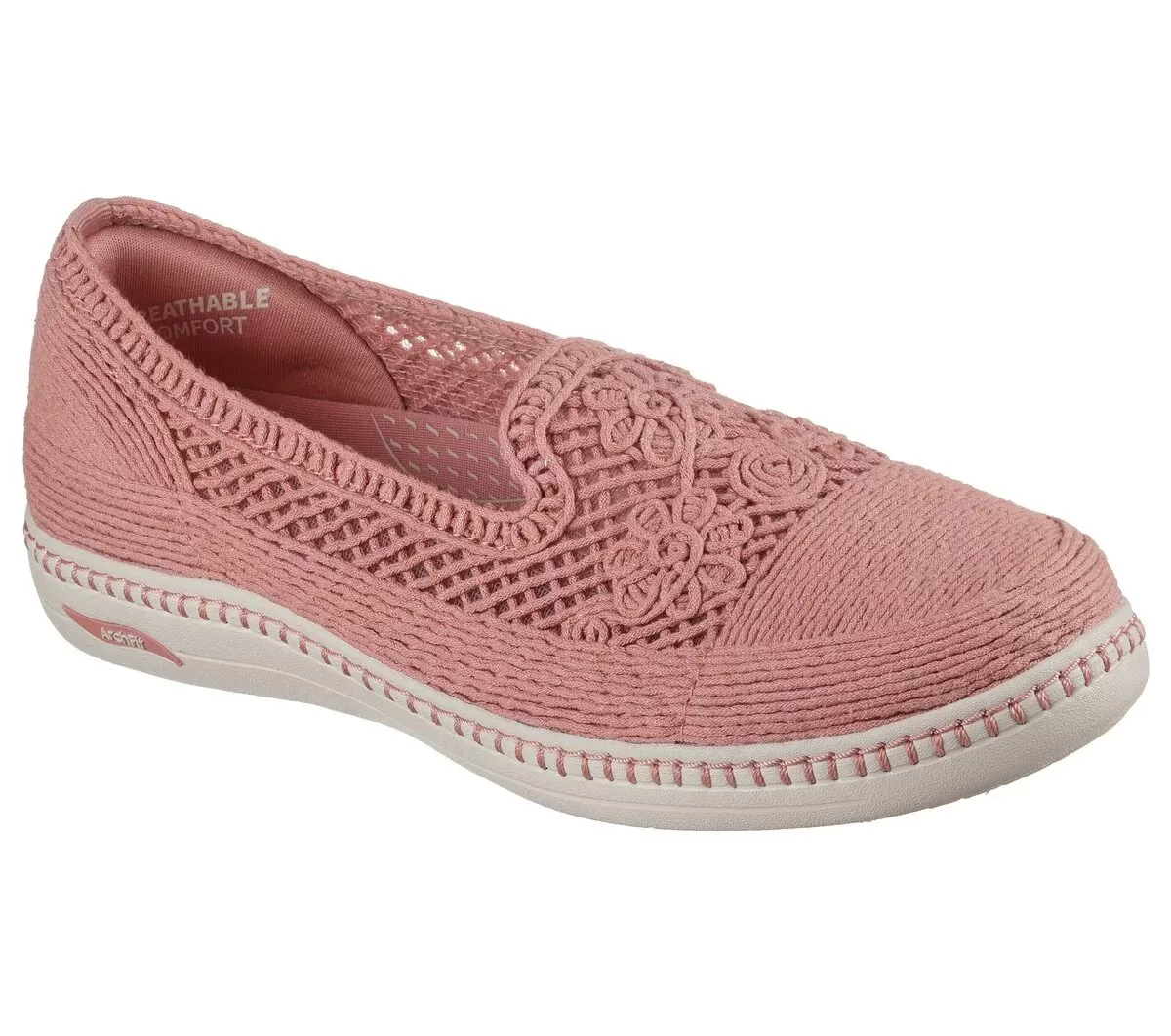 Enjoy walks in long-lasting comfort with Skechers Arch Fit Inspire – Venice. This vegan skimmer design has been granted the APMA Seal of Acceptance and features a crochet knit upper with Breathable Comfort®, lightweight ULTRA GO® cushioning, and a removable Arch Fit® insole.