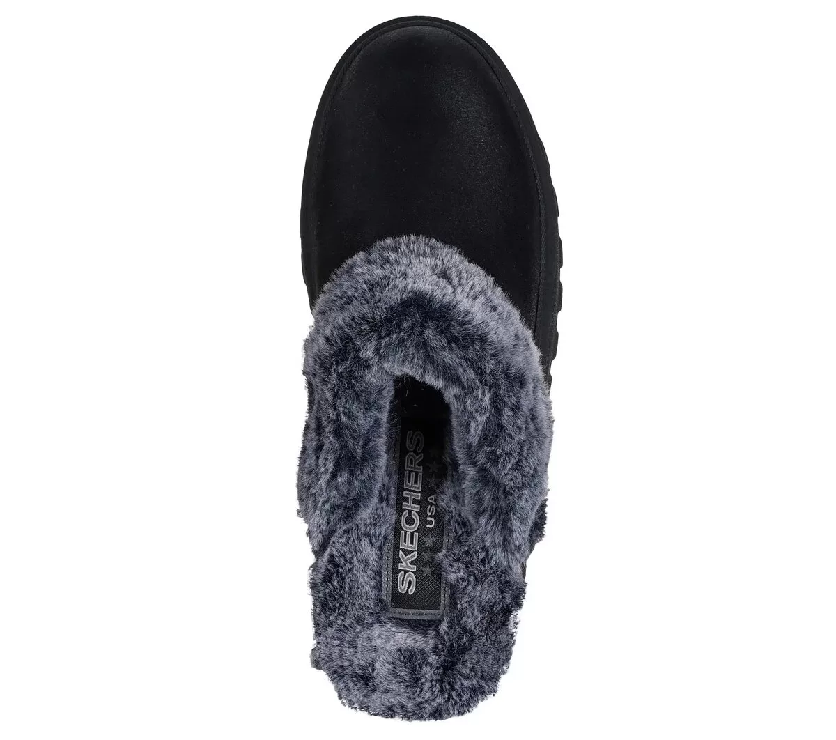 Stay cozy and comfortable all season in Skechers Shindigs – Comfyy! This vegan open-back clog design features a distressed leather-look textile upper with faux-fur trim and lining, platform midsole, and a cushioned Skechers Memory Foam™ insole.
