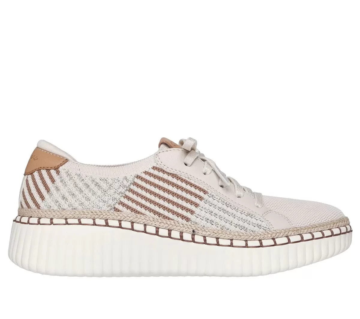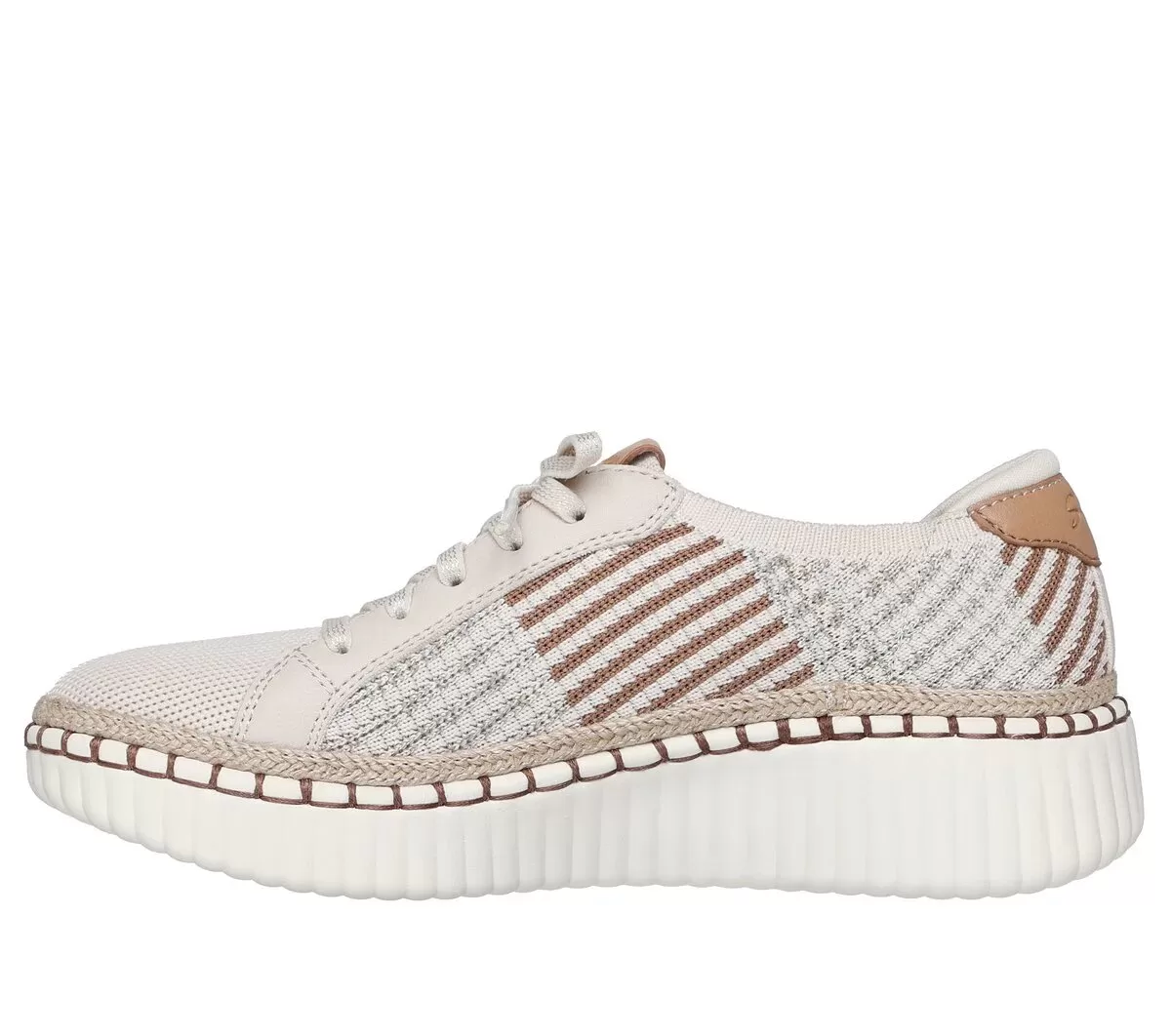 Take a walk on the stylish side in easy-wearing comfort with Skechers Wilshire Blvd – Breezy Stroll. This vegan Skechers No Tie Fit® design features a knit and synthetic leather upper with faux laces, jute trim along the midsole, a Comfort Pillow at the heel, and a cushioned Skechers Air-Cooled Memory Foam® insole.